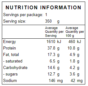 Keep frozen for up to 4 months. Defrost for even heating, once defrosted use within 2 days.